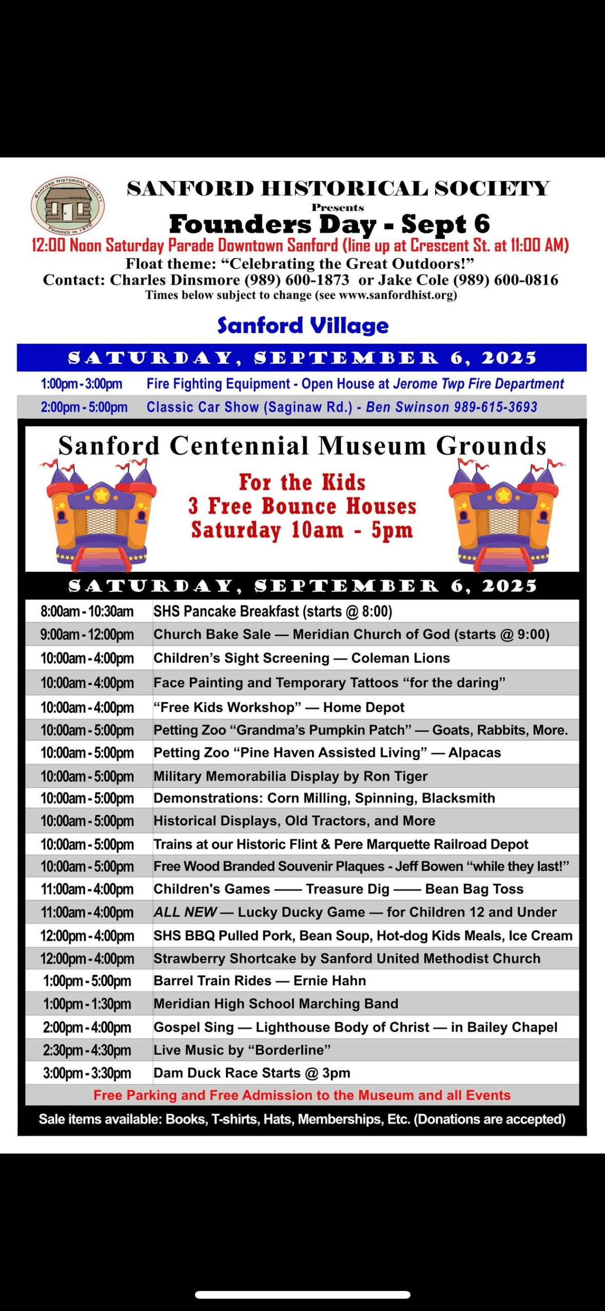 Join us for the monthly chamber meetings! Meetings are on the second Tuesday of each month at the Sanford Moose Lodge located at 266 E. Saginaw Road starting at 1:00pm.